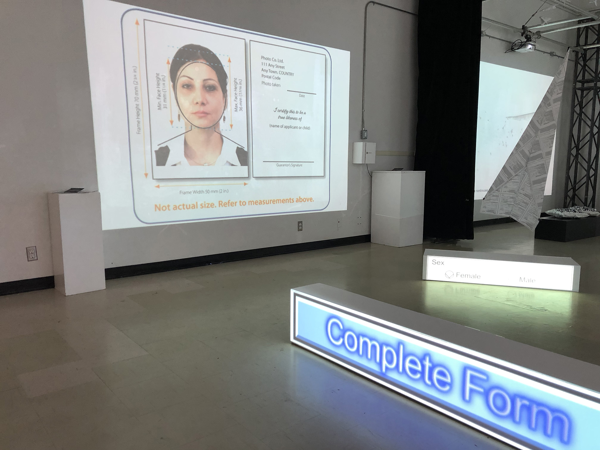 Canadian Passport Application form (PPTC 153) becomes an audio-visual puzzle to show how such form is designed to undermine the concept of difference, which is at the core of individuation and forms the backbone of diversity and multiculturalism. In an interplay with themes of control and consent, this multimedia installation, presents parodic reflections on the question; How Deep is the Difference?
